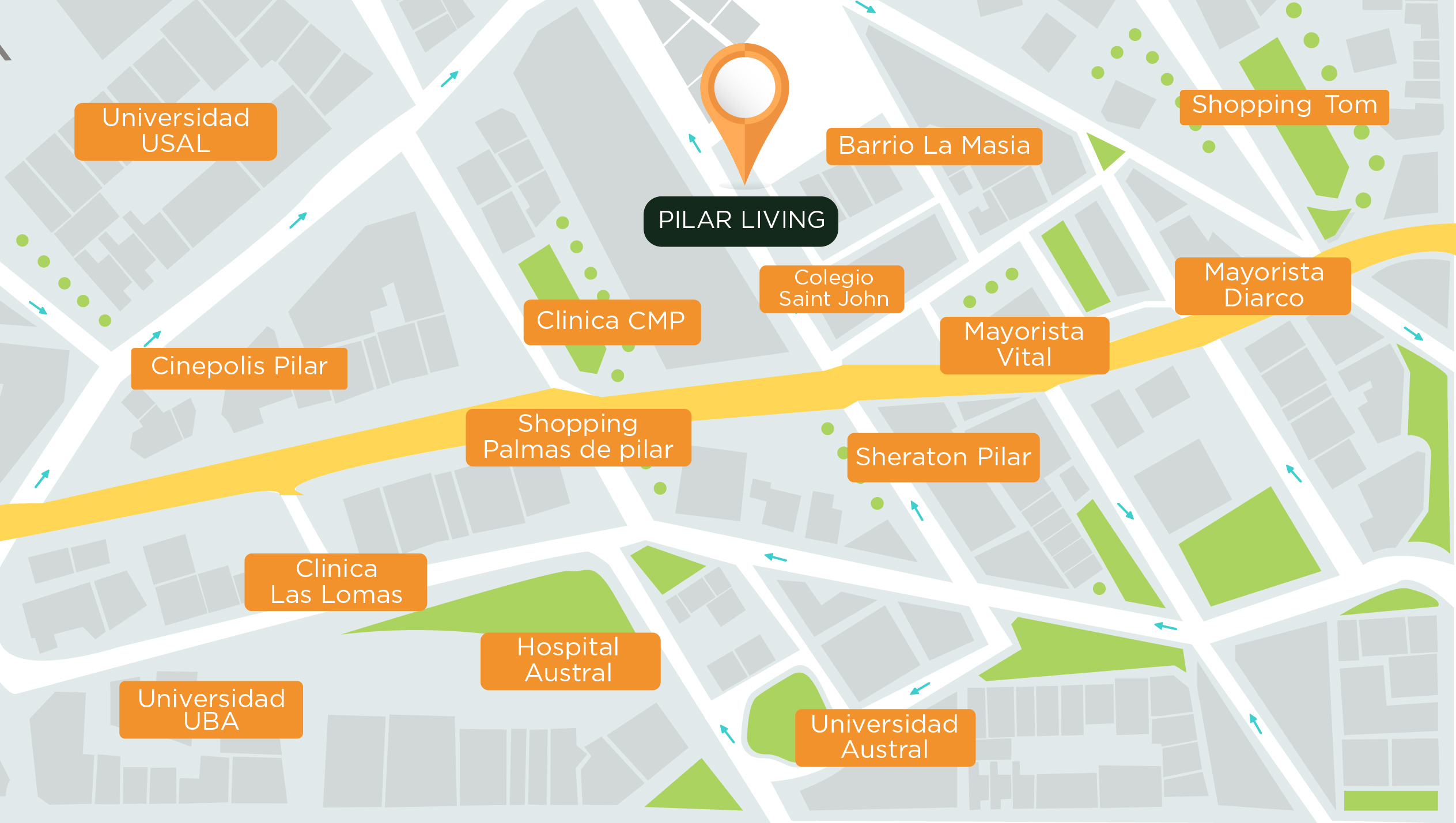 Lindero al club de campo pueyrredón, al colegio St. John y al Barrio cerrado La Masía, con acceso privilegiado y prácticamente directo desde la autopista, pilar living se torna en un lugar seguro.
